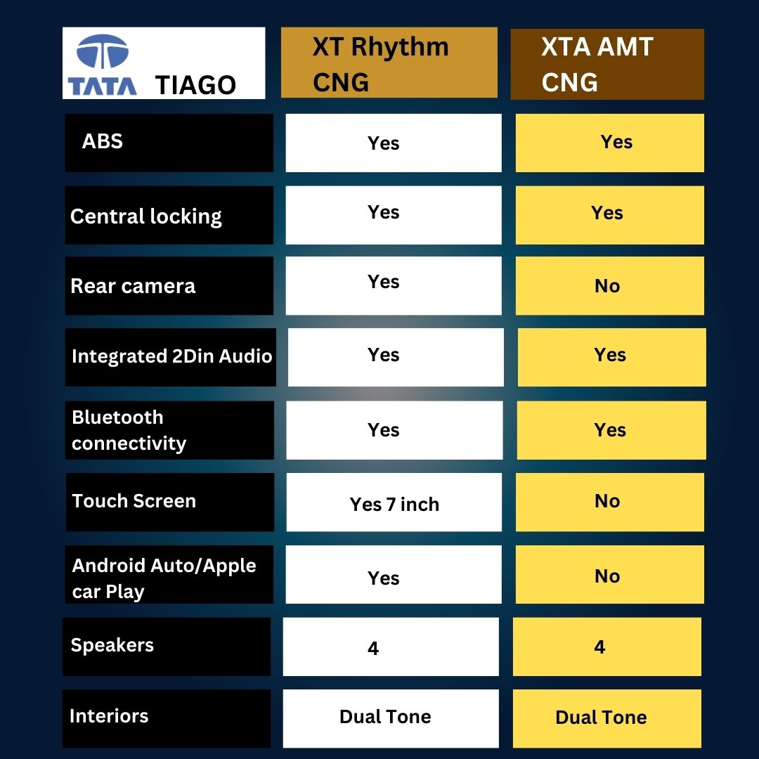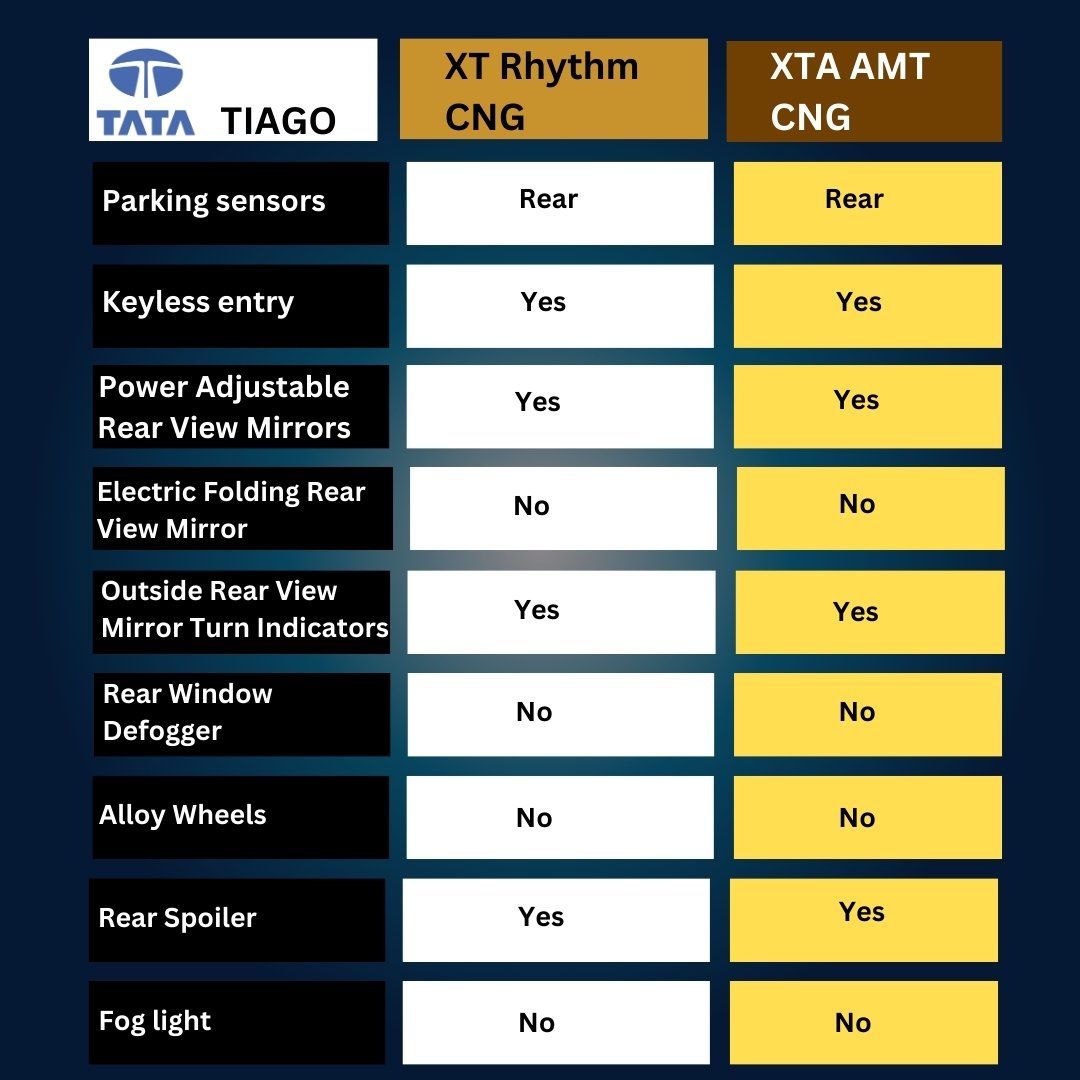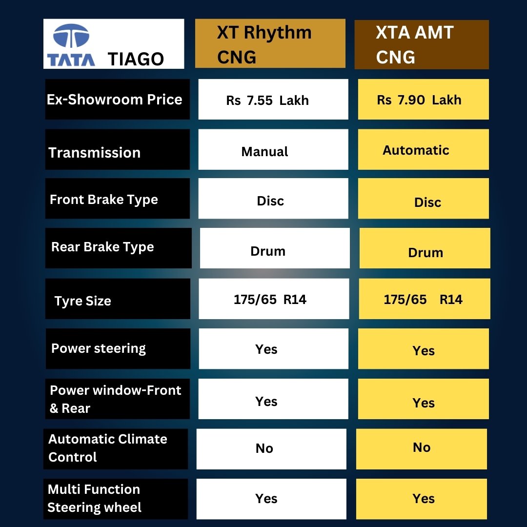 Tata Tiago - XT Rhythm CNG, XTA AMT CNG